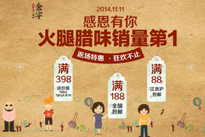 入了12月的江南,空氣中總會飄散著一股似近似遠(yuǎn)的肉香味,勾人魂魄到直咽口水。窗檐下懸掛的香腸臘肉有一種“年之將近”的即視感,因為那就是刻到骨子里的年味啊。就算時代再變化,“小雪腌菜,大雪腌肉”的習(xí)慣依然被懂得生活的人代代傳承著。2014年的金字天貓旗艦店雙12來了,為您準(zhǔn)備的好臘味上新,十二道臘味年前抄底價。春運車票已經(jīng)可以買了,臘味也同樣:回家過春節(jié),你準(zhǔn)備好了沒有?